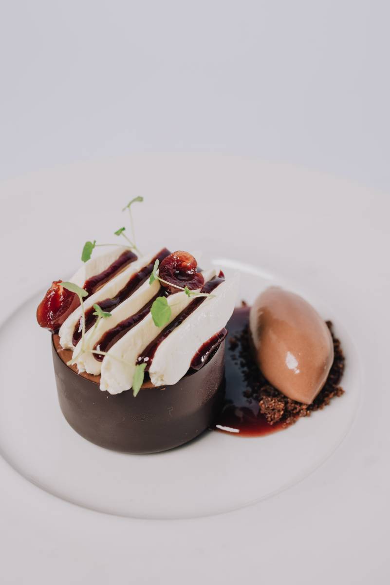 Ballotine de volaille fermière aux pistaches, champignons en purée et aigre doux, consommé en gelée -19 €